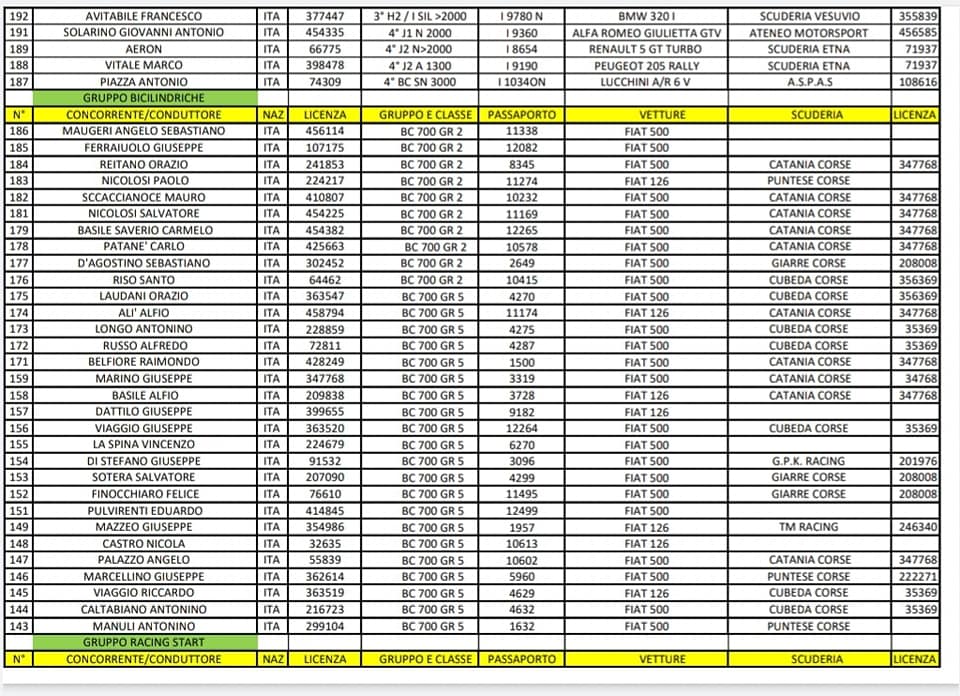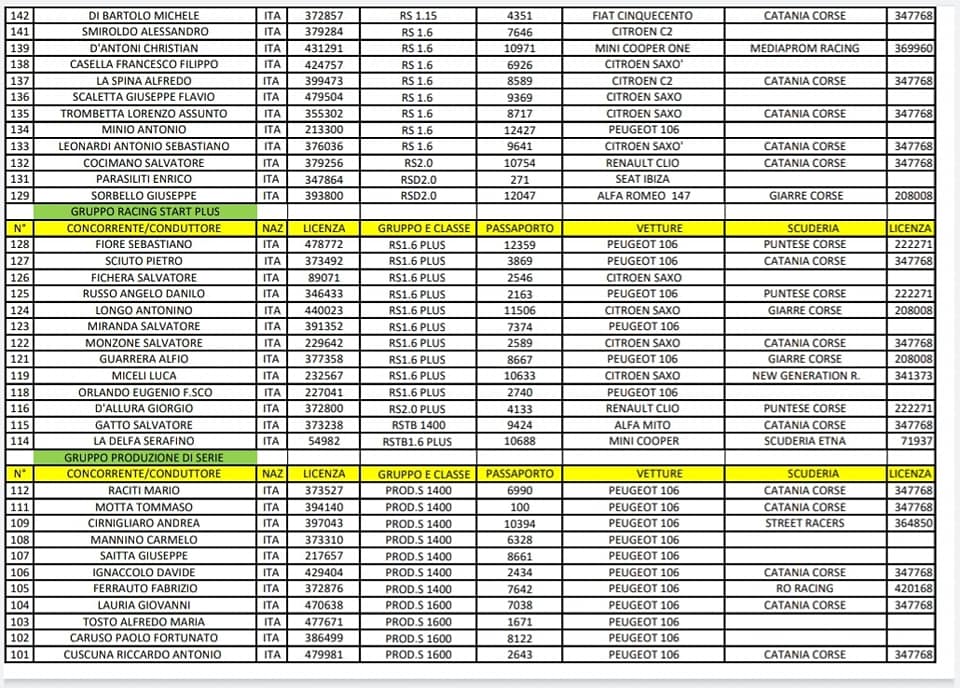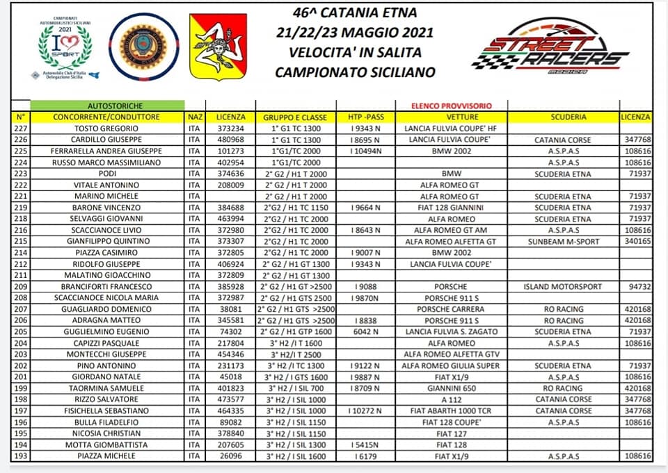 C’era grande entusiasmo per il ritorno della cronoscalata “Catania-Etna” la cui 46° edizione, ha la validità per il Campionato Siciliano, e tornerebbe a disputarsi dopo 10 anni di attesa. Venerdì erano in programma le verifiche (181 i piloti che hanno perfezionato l’iscrizione).