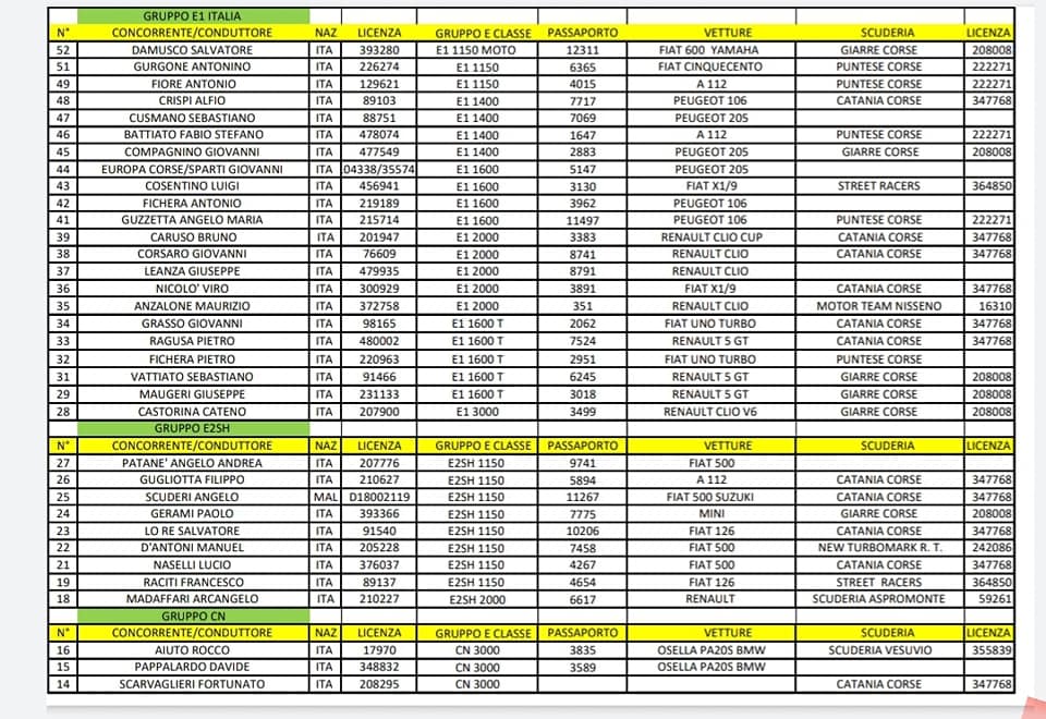 Fra questi non vi erano alcuni dei migliori specialisti siciliani “costretti” comunque a rinunciare alla corsa di casa essendo impegnati nella contemporanea prova di apertura del Campionato Italiano Velocità Montagna, la Sarnano-Sassonetto (30° Trofeo Scarfiotti), pure questa ricollocata in calendario dopo un primo rinvio proprio in concomitanza della Catania-Etna.